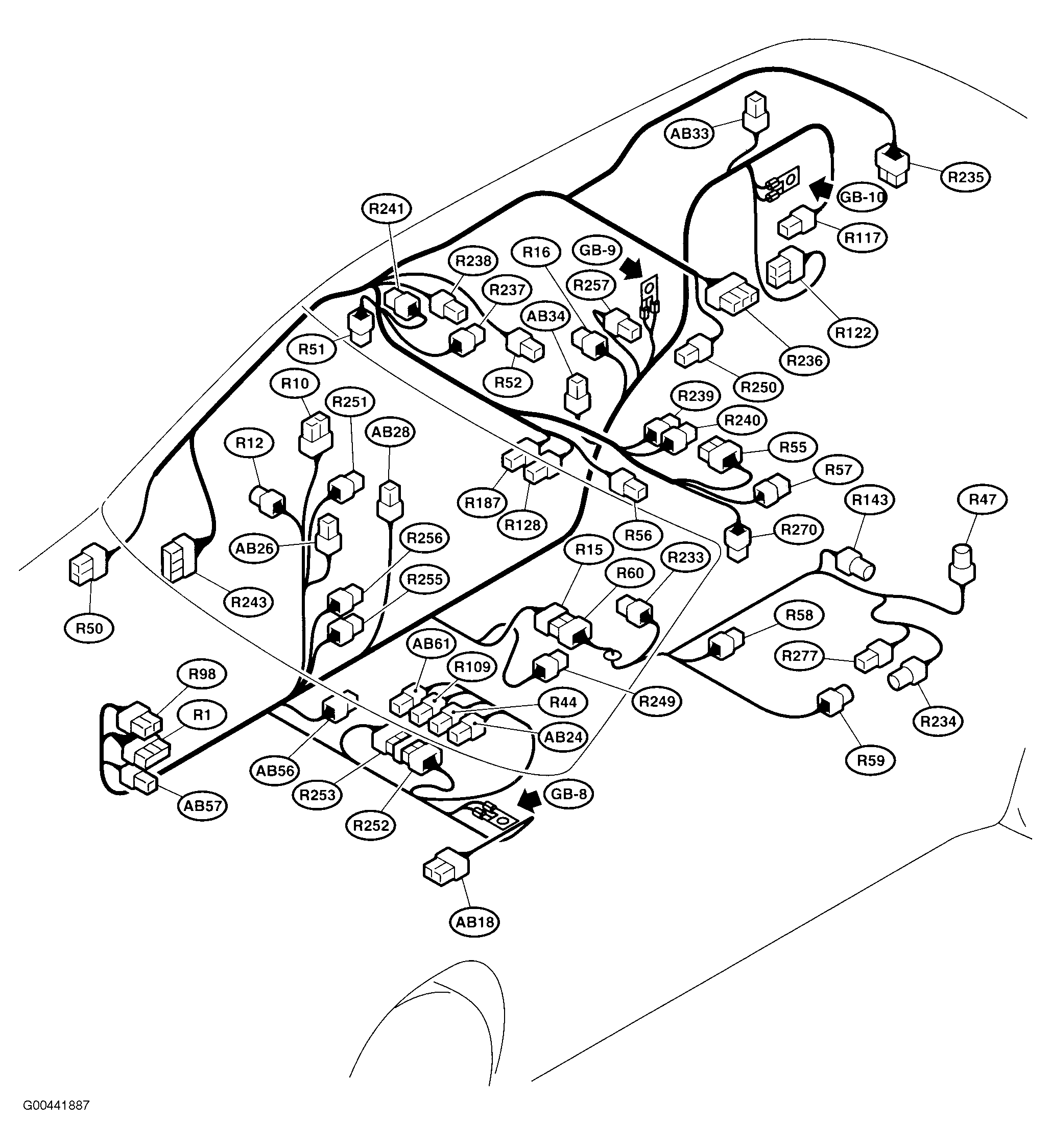 | Airbag Control Module (AB18) | Under center console. See Figure. |