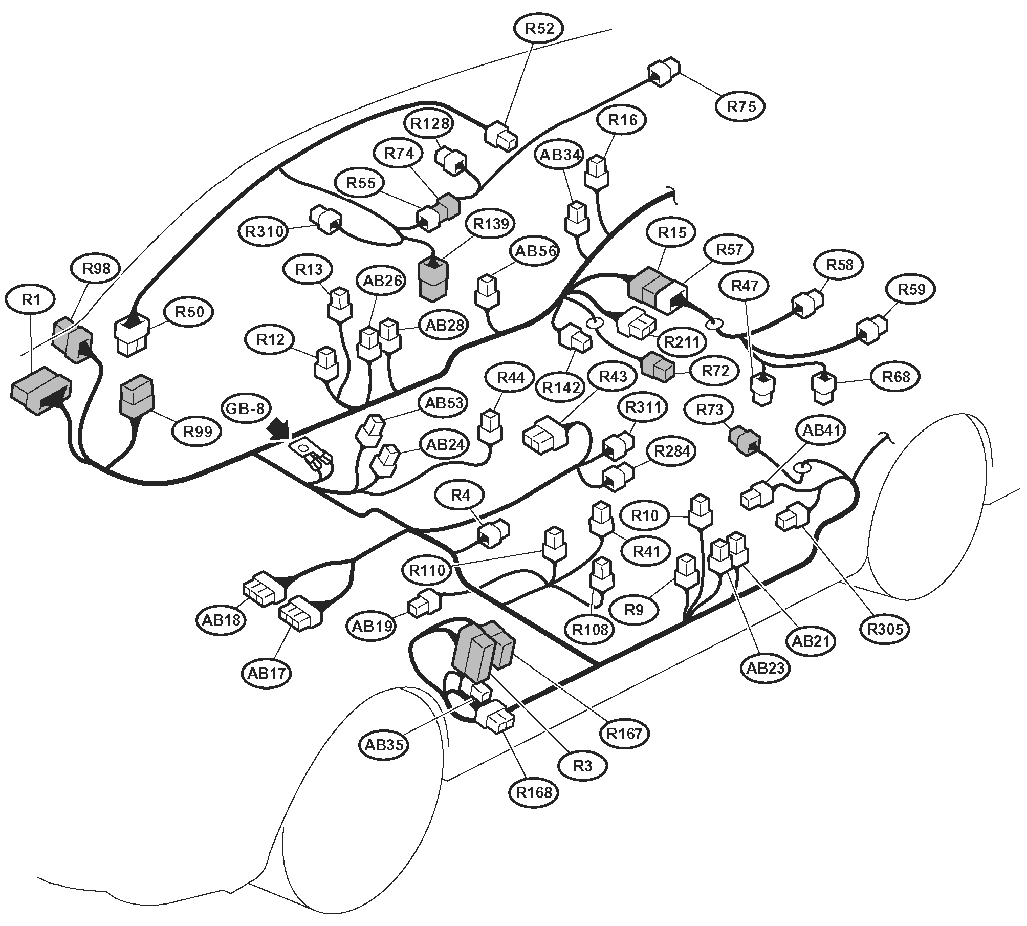 | Fuel Pump Control Module (R122) | Behind right rear quarterpanel. See Figure. |