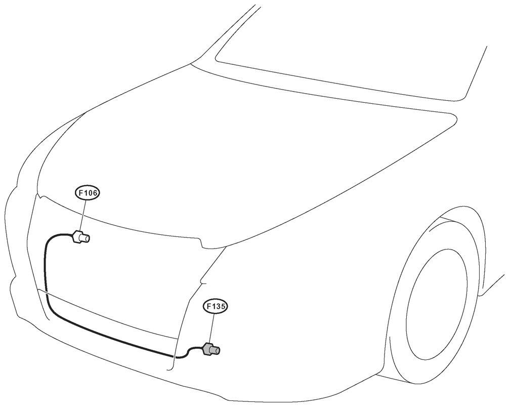 Radiator Fan Control Module (F106) Right front of engine compartment. See Figure.