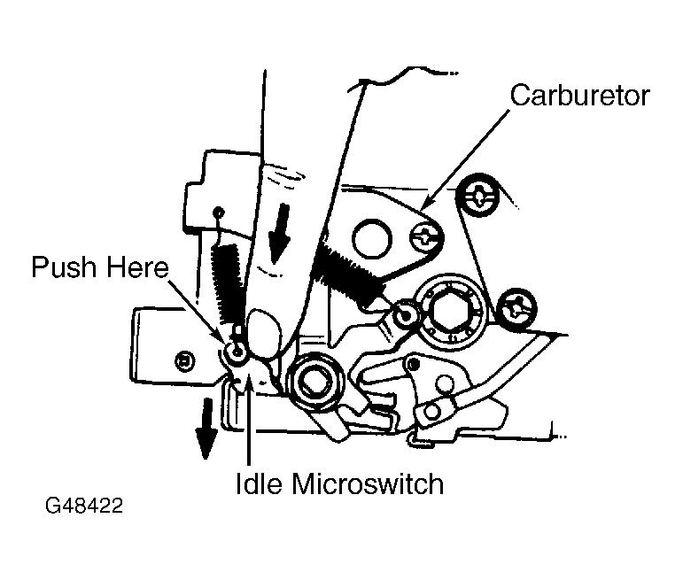 - If solenoid is in working order, start and warm engine to normal operating temperature. Increase engine speed to 3000-3500 RPM. Move idle microswitch down, checking that engine changes RPM. See Figure