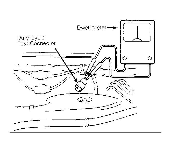 - Warm engine to normal operating temperature. Remove rubber seal from duty cycle test connector. Connect positive lead of dwell meter to Blue/Red wire, and negative terminal to Black/Green wire. See Fig 1 .