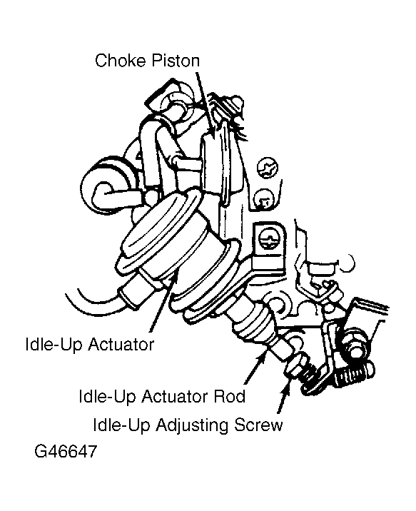 - Verify idle-up actuator rod is extended as each unit is turned on (indicating that idle-up mechanism is working). If idle-up RPM is incorrect, adjust by turning idle-up adjusting screw. See Fig 1 .