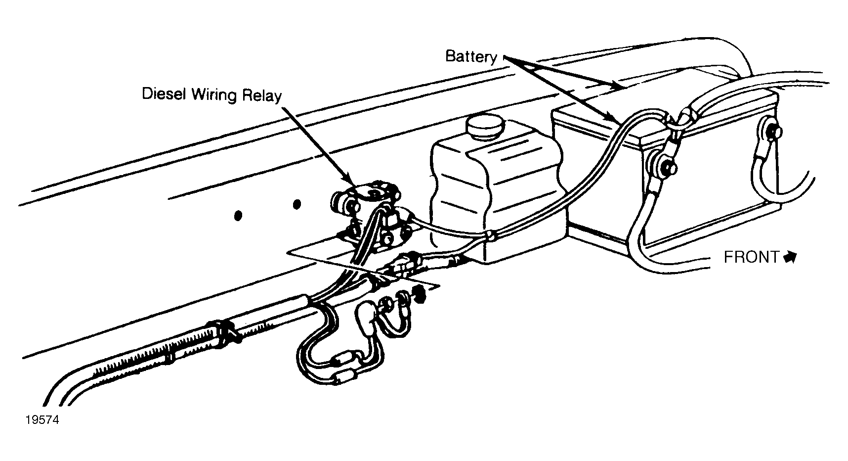 5. To jumper fuel pump relay on all models, remove fuel pump relay from fuse/relay box with harness connector installed. Fuse relay box is located in engine compartment, behind battery. Using jumper wire, connect Pink wire terminal to White/Blue wire terminal.