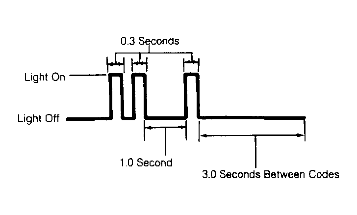 4. As an example, a Code 21 will be identified by a flash, flash, pause and flash. A long pause will exist and Code 21 will be repeated 3 times. See Fig 2 . Each additional code will flash 3 times.