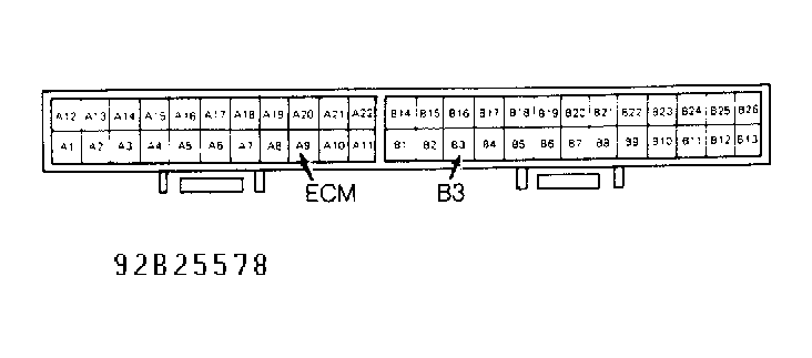 - With ignition off, disconnect ECM connector. ECM is under lower left side of dash. Connect voltmeter between ground and terminal A13. See Fig 1 .