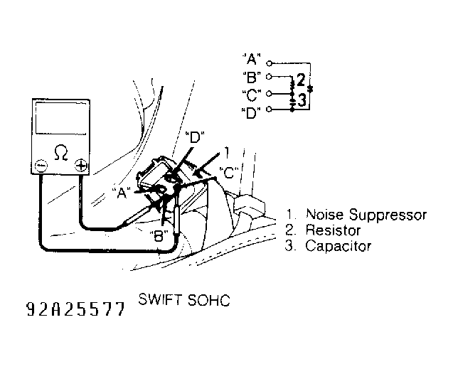 Home >> Suzuki >> 1992 >> Swift GT >> Repair and Diagnosis >> Engine Performance >> System >> Engine Controls - Basic Testing >> Ignition Checks >> Noise Suppressor >> Swift