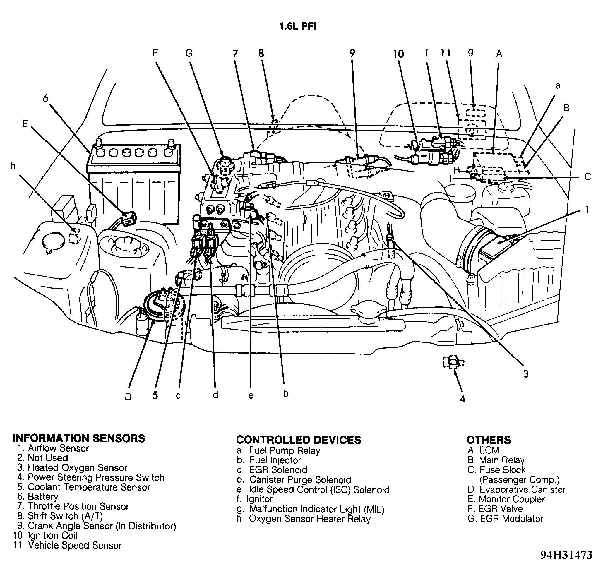 | 1.6L PFI | Under left side of dash. See Figure . | ||