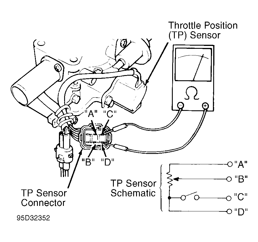 Fig 1: Identifying Throttle Position (TP) Sensor Terminals