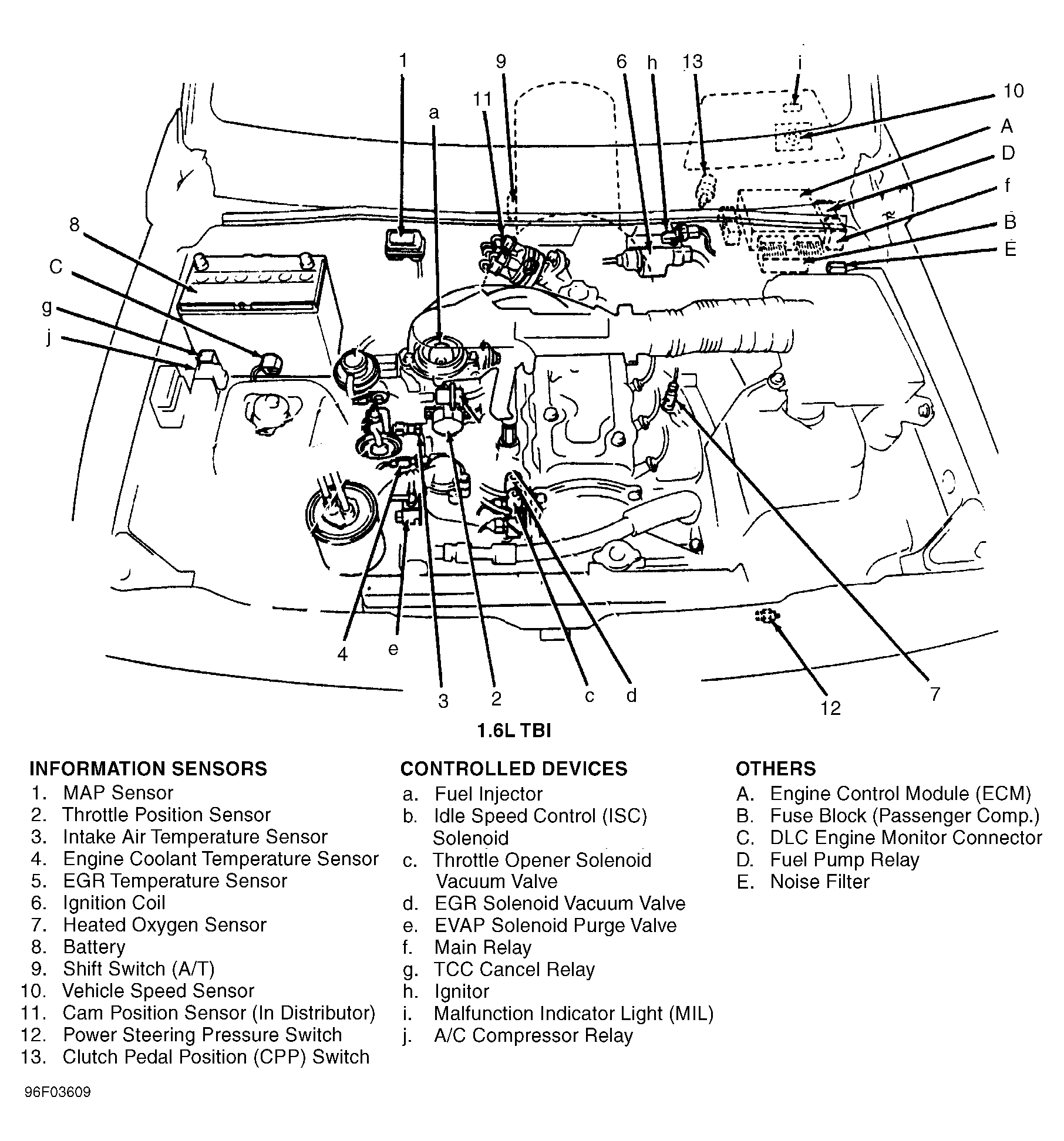 | Passenger Compartment Fuse Block (1.6L TBI) | Under left side of dash. See Figure . |