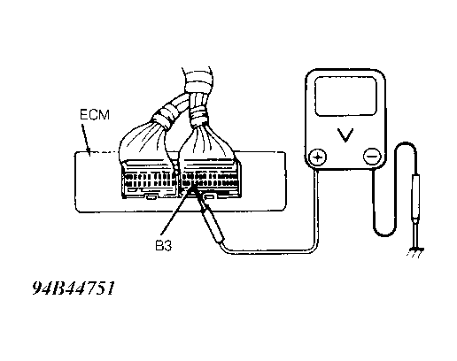 - Access ECM wiring connectors (leave connected). Connect voltmeter between ECM connector terminal B3 and ground. See Fig 1