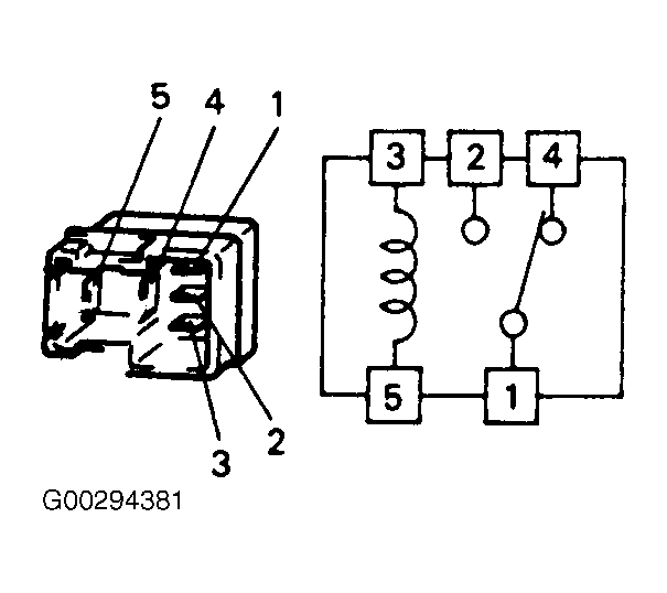 1. Turn ignition off and disconnect negative battery cable. Remove ABS fail-safe relay from engine compartment fuse/relay block and check resistance between relay terminals. Resistance between relay terminals No. 3 and 5 should be 78-96 ohms at 68°F (20°C). See Fig 1 . Continuity should exist between relay terminals No. 1 and 4. No continuity should exist between relay terminals No. 1 and 2.