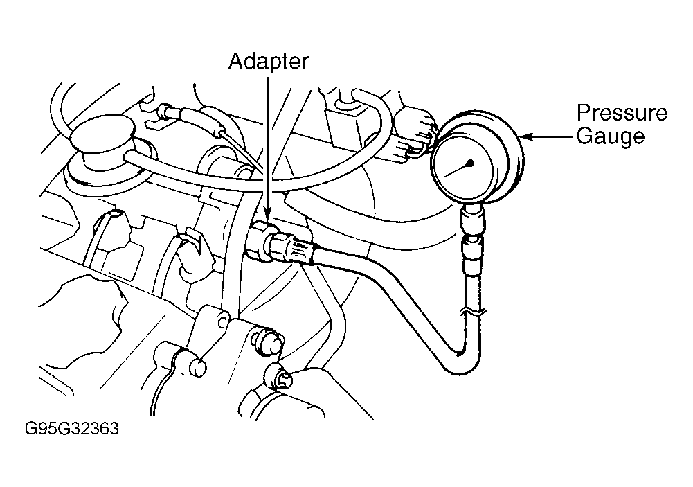. Repair as necessary. Remove fuel pressure gauge and reinstall fuel inlet hose. Start engine to ensure no fuel leakage exists.