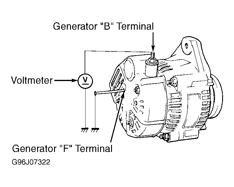 - If output voltage now exceeds specification, replace IC voltage regulator. If output voltage is still less than specified, generator is defective. Repair or replace generator as necessary.