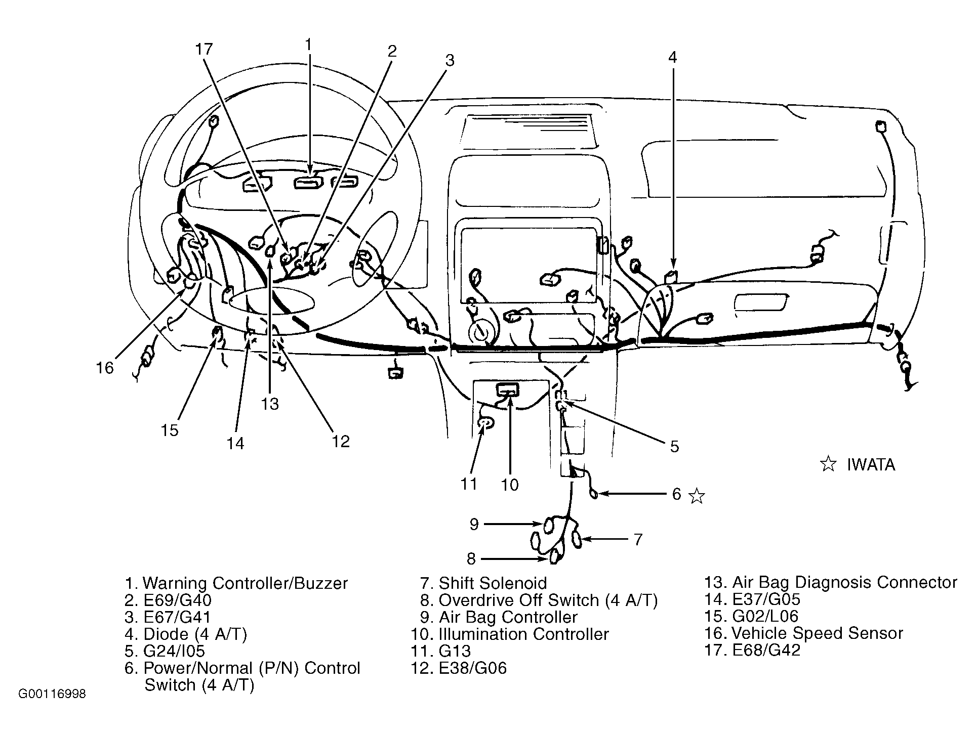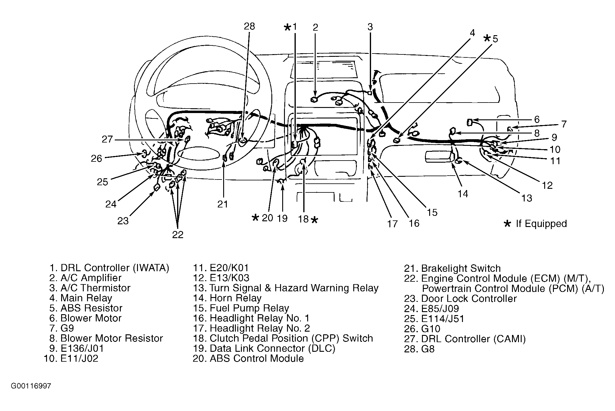 | DRL Controller (IWATA) | Behind center of dash. See Figure . |