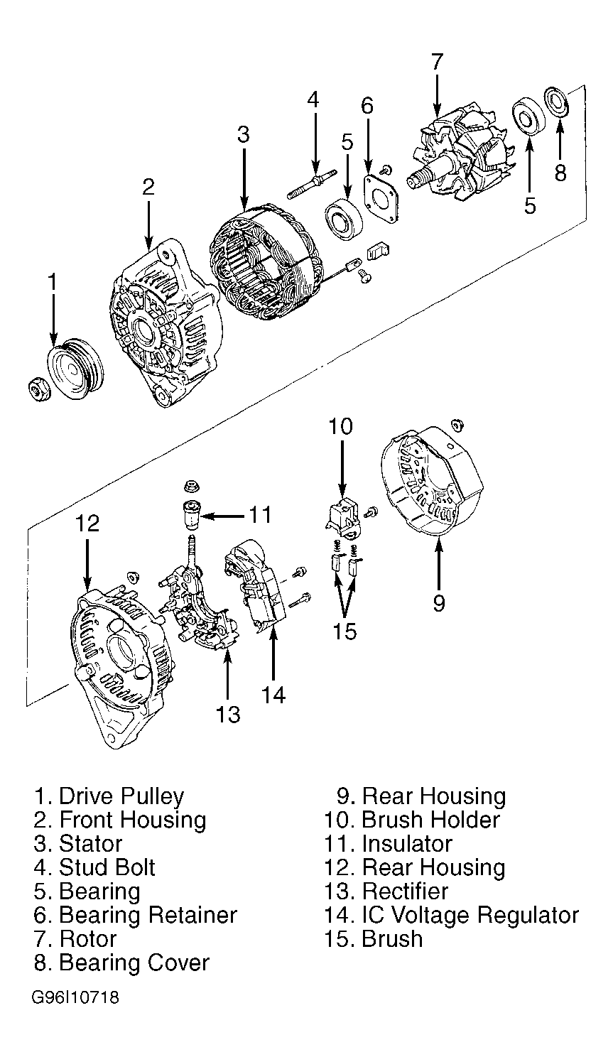 Fig 4: Exploded View Of Generator (Vitara - Except 85-Amp Generator)