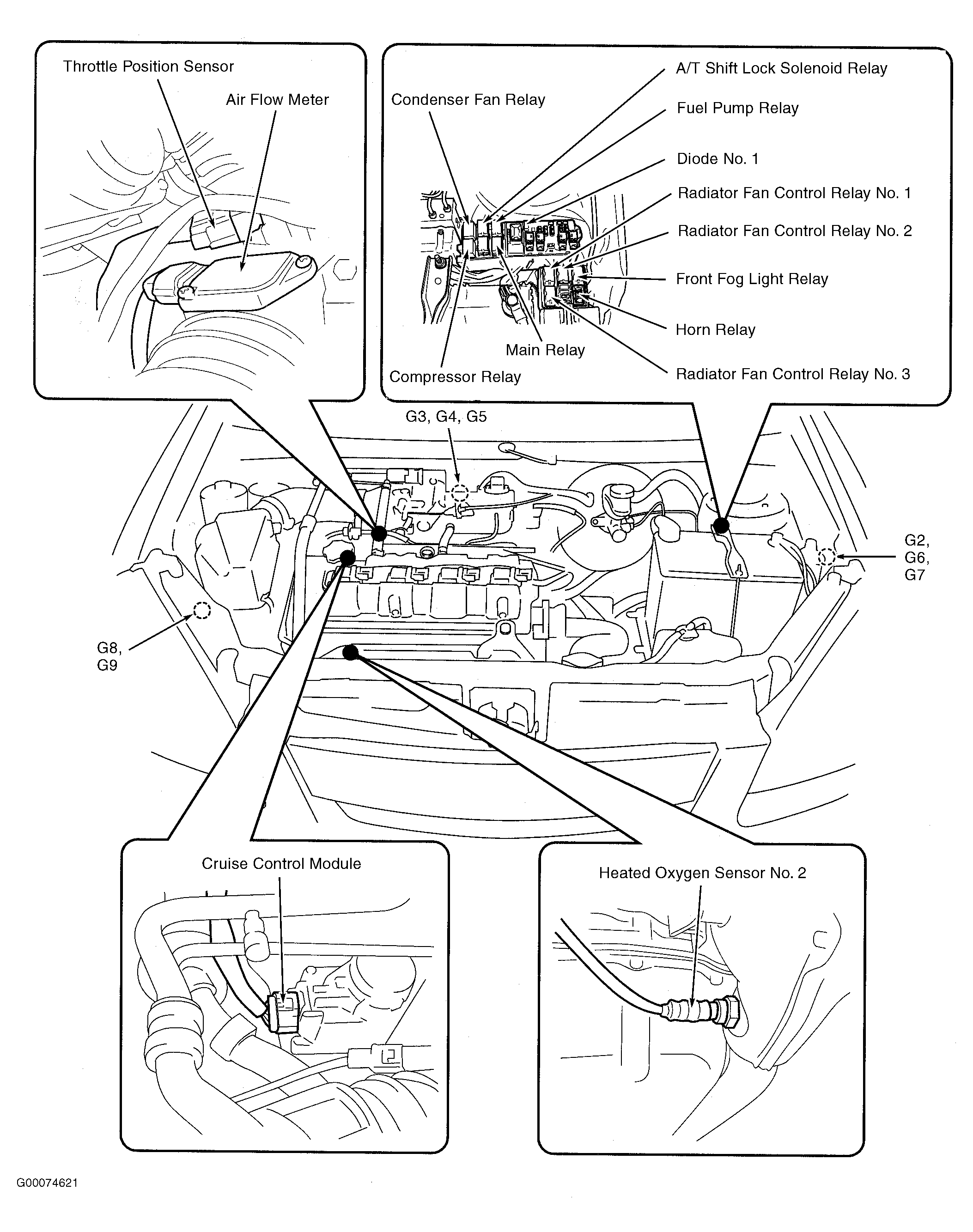 | Cruise Control Module | On engine, near throttle valve. See Figure . |