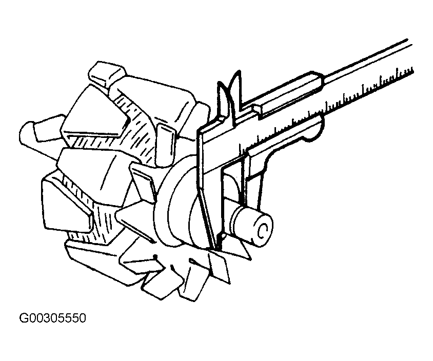 - Using a vernier caliper, measure the slip ring diameter. If the diameter is less than minimum, replace the rotor (80A/105A). See Fig 2