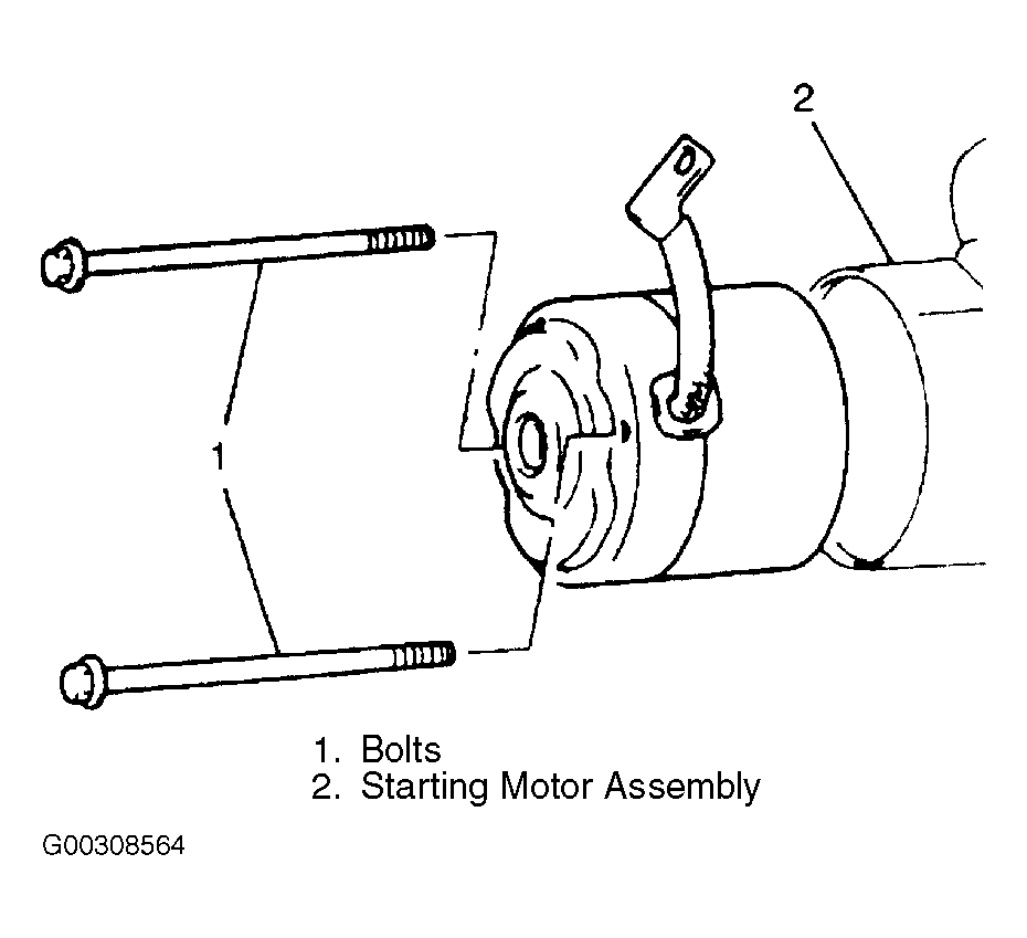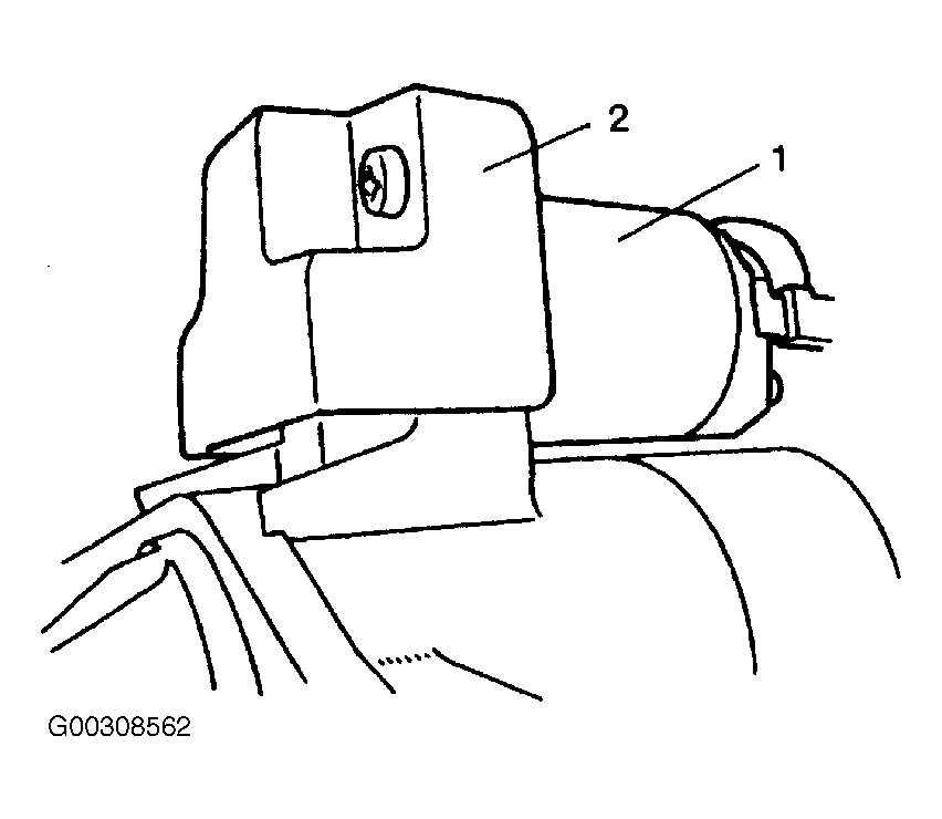 - Install magnetic switch assembly (1) and protector (2) (if equipped). Connect wire (switch to motor) to switch terminal. See Figure .