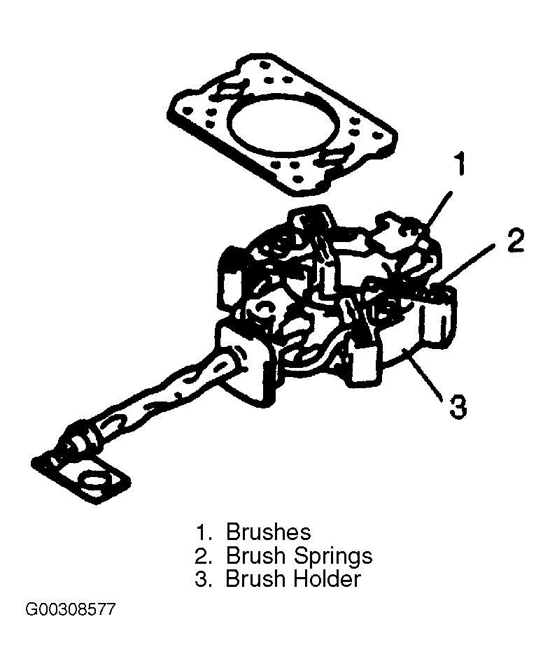 - Install brush holder (3) to armature while pushing 4 brushes (1) outward. See Fig 1 .
