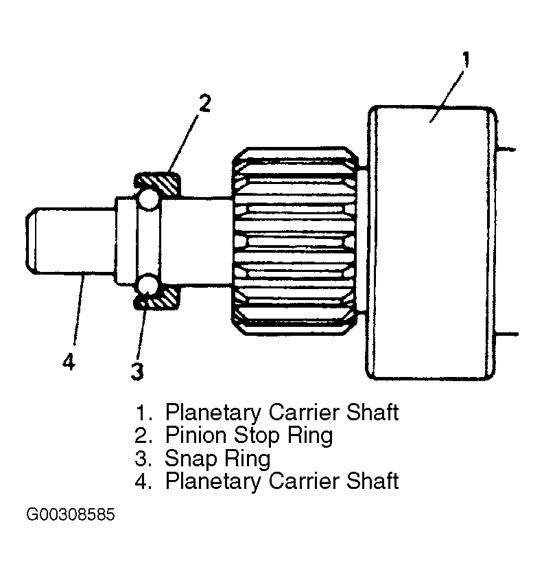 - Install overrunning clutch assembly (1) to gear shaft (4), using care for installing direction of pinion stop ring (2). See Fig 3 .