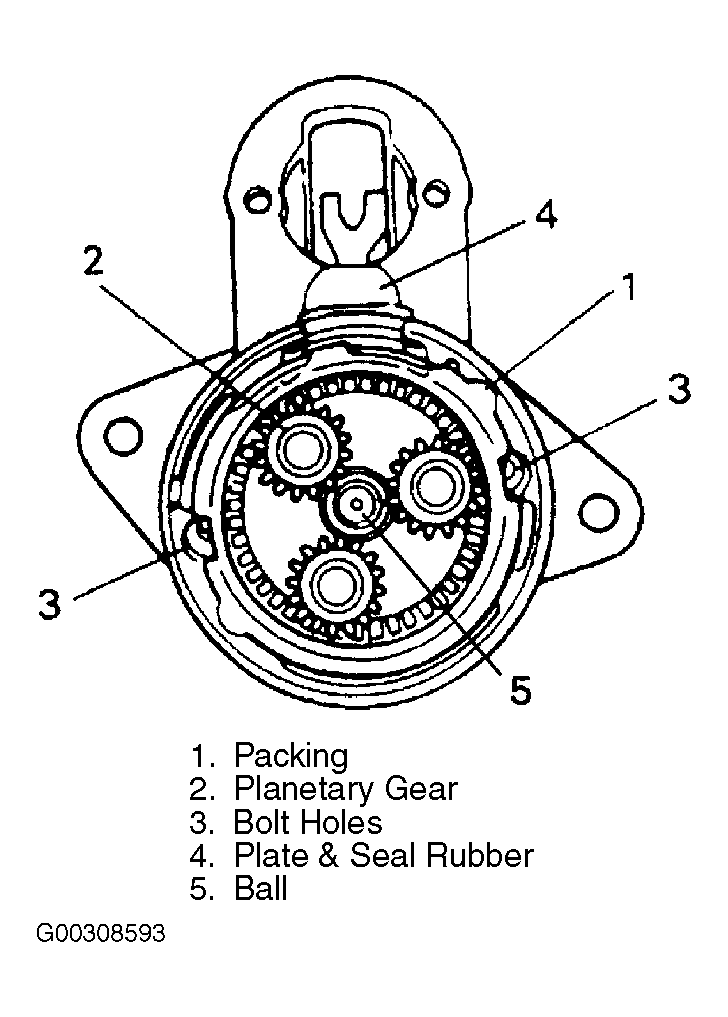 - Install plate and seal rubber (4) to front housing. Apply grease to ball (5) and install ball into shaft hole.