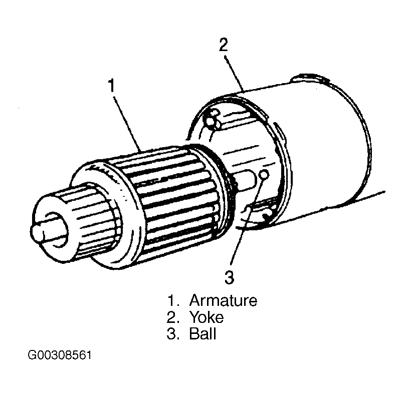 - Remove the armature (1) from yoke (2) and ball (3) from the end of the armature shaft. See Fig 11 .