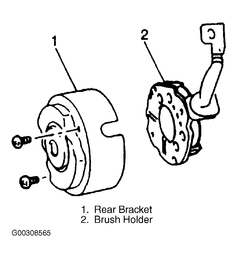 - Remove brush holder (2) from rear bracket (1). See Fig 12 .