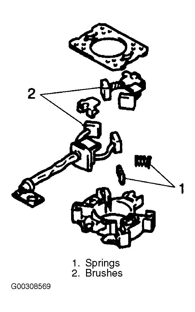 - Remove brush springs (1) and brushes (2). See Fig 13 .