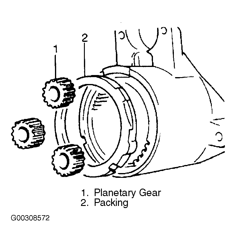 - To overhaul reduction gear assembly, remove packing (2) and planetary gear (1). See Fig 5 .