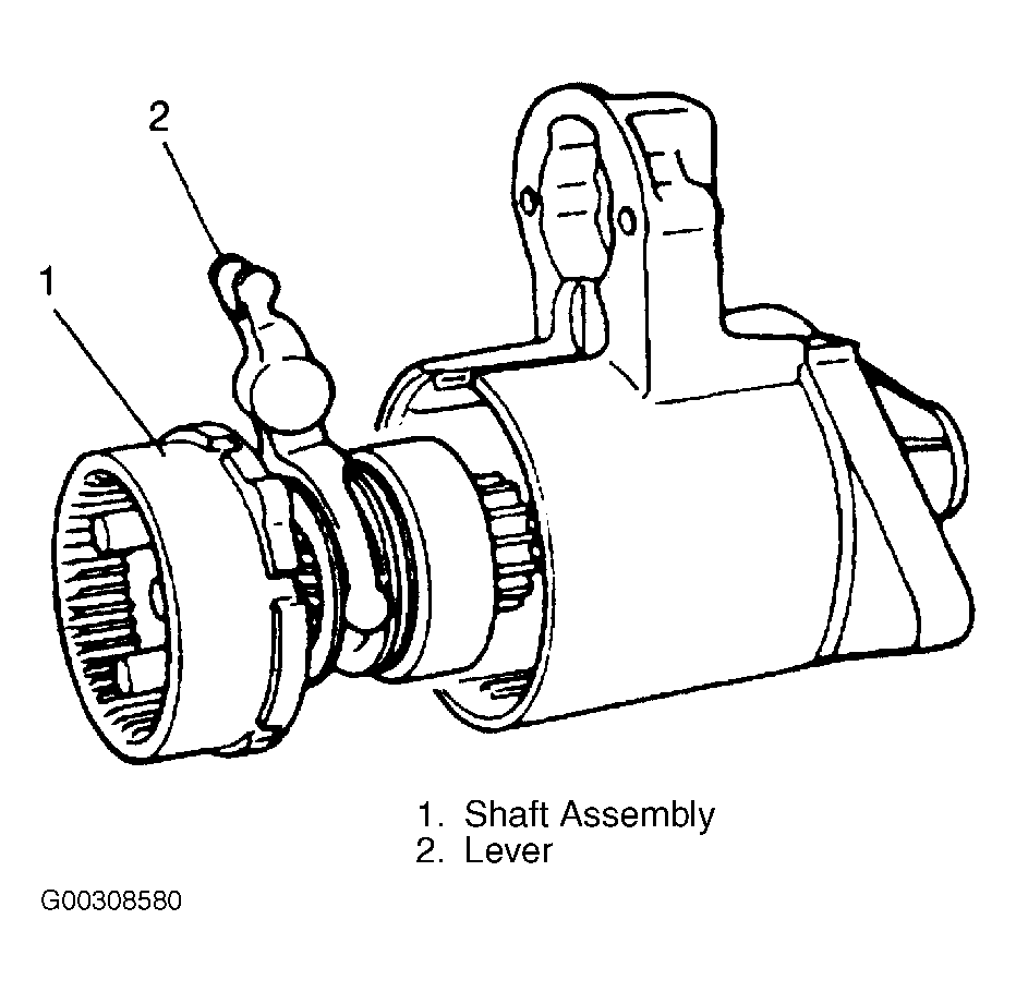 - Remove shaft assembly (1) with lever (2). See Fig 7 .