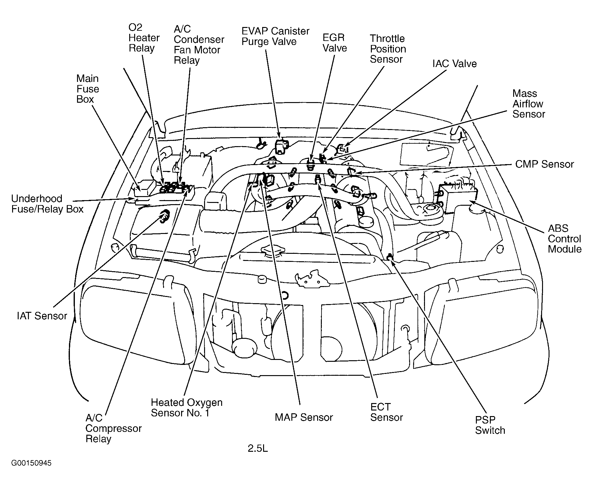 | ABS Control Module (2.5L) | At left rear corner of engine compartment. See Figure. |