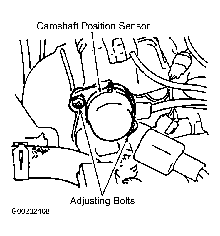 - Loosen Camshaft Position (CMP) sensor bolts and turn CMP sensor until timing marks line up. See Fig 4