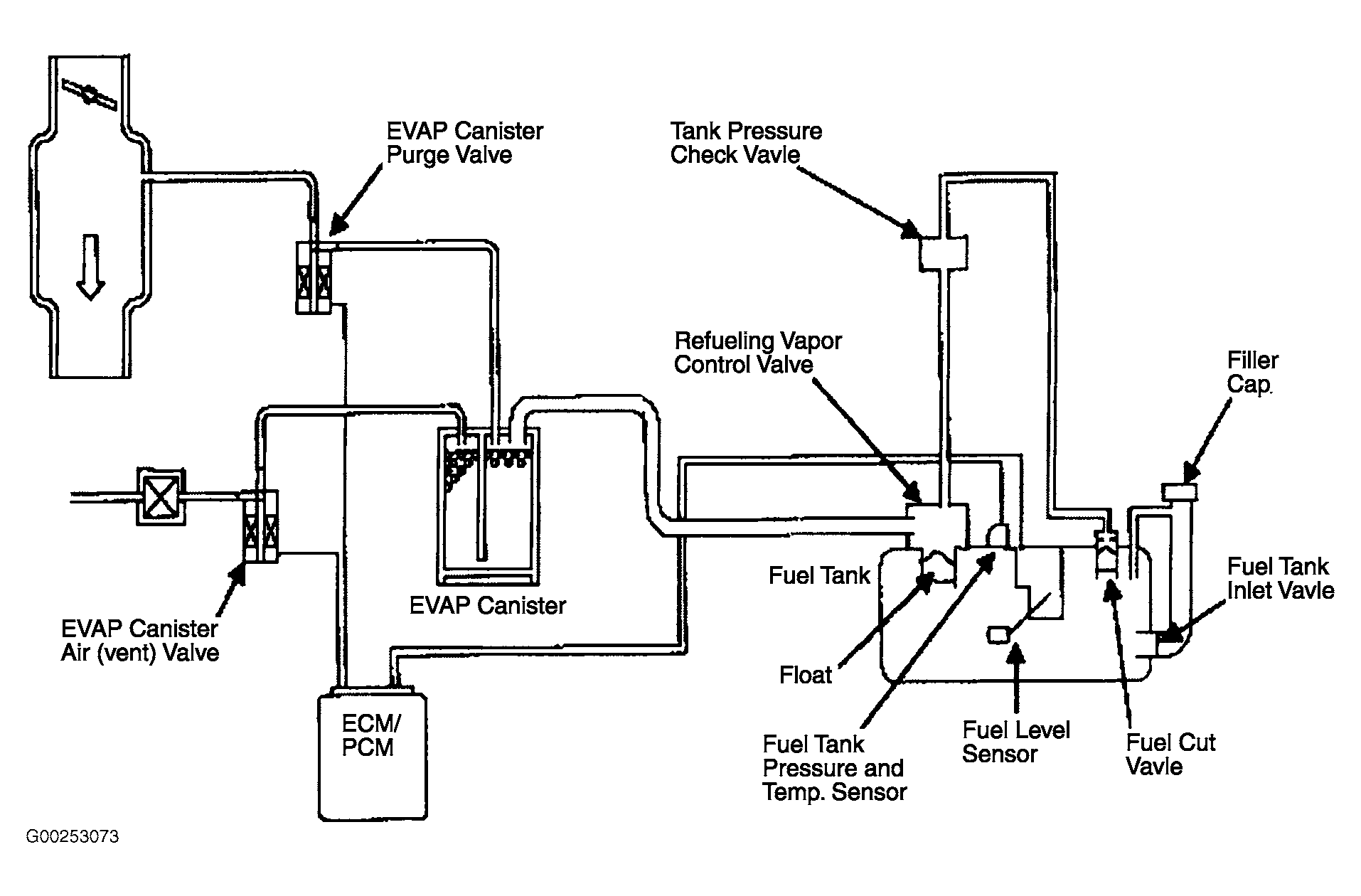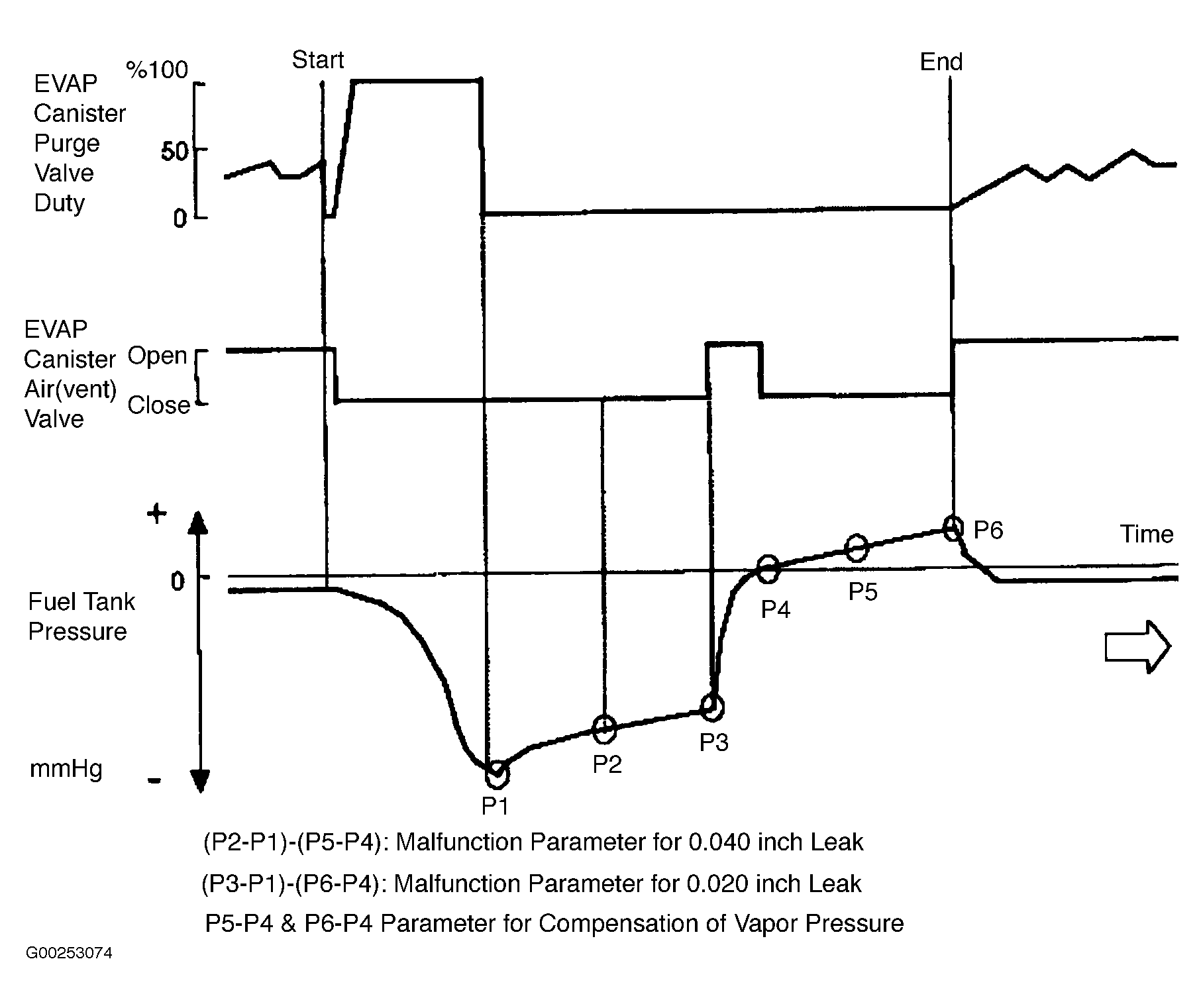 To monitor the EVAP control system, a fuel tank pressure sensor and an EVAP canister air (vent) valve are added to the system. See Fig 1. The monitoring system measures pressure change of closed EVAP system circuit under the depressurized condition. The system also measures pressure change of closed circuit to compensate evaporative pressure with the normal range pressure, if necessary. See Fig 2.