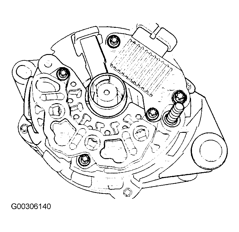 - Fasten the screws holding the rectifier regulator/brush holder assembly to the end frame.