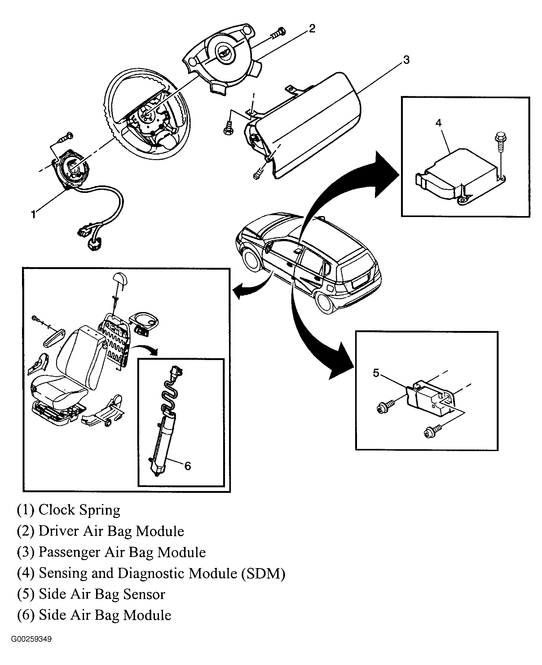 | Sensing & Diagnostic Module (SDM) | Below center console. See Figure. |