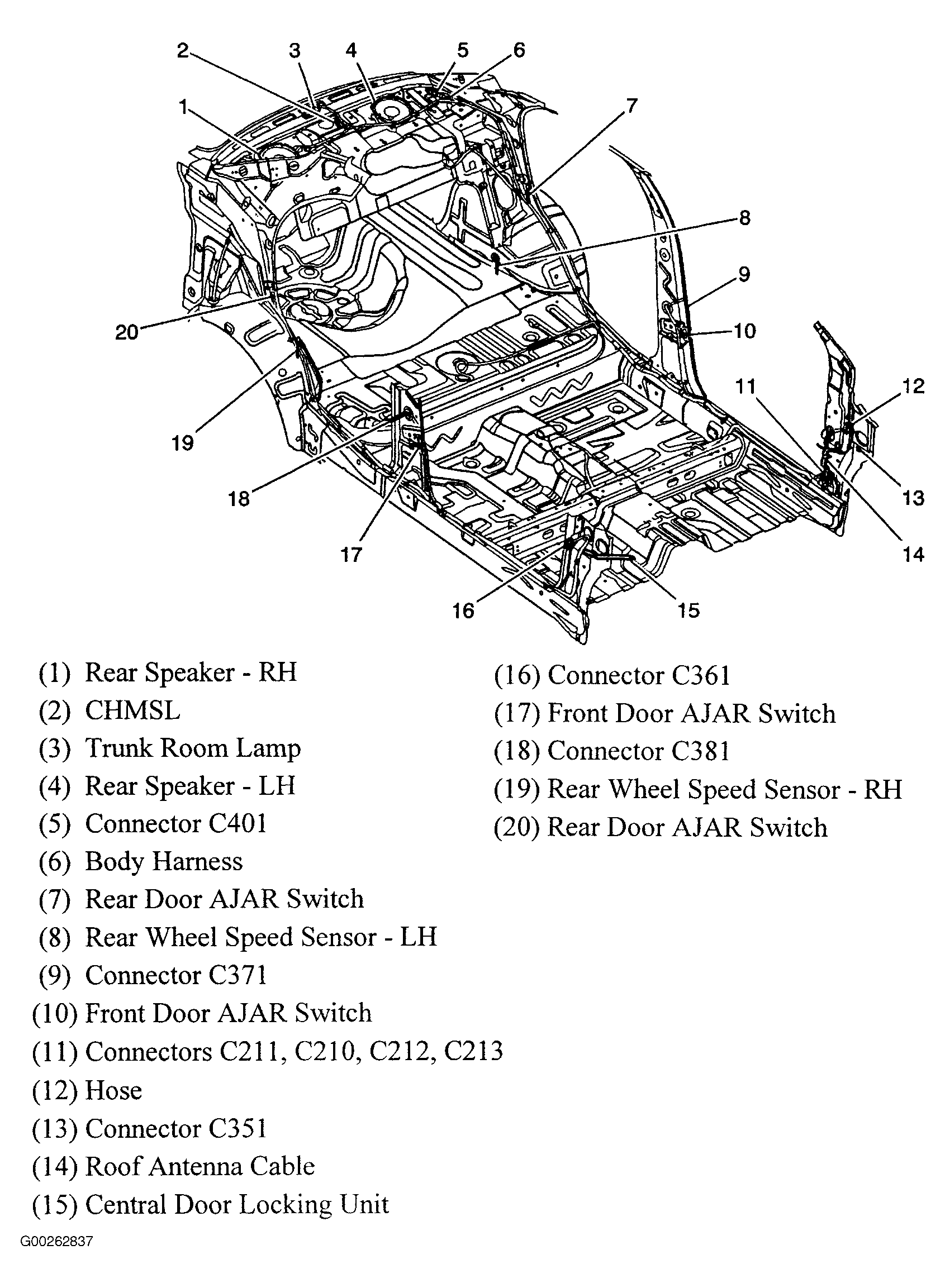 | Central Door Locking Unit | Bottom of right windshield pillar. See Figure. |