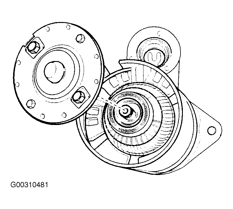 - Position the commutator end frame/brush holder assembly, lining up the end frame holes with the through bolt holes in the housing.