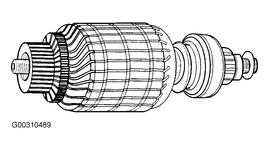 - Lubricate the drive end of the armature shaft with lubricant. See Figure.