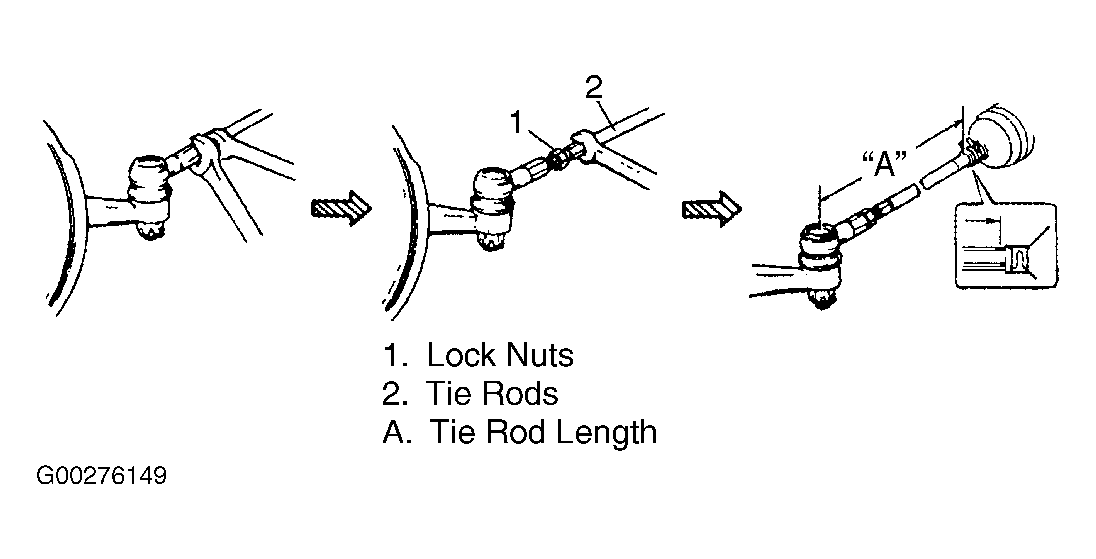 - Loosen right and left tie rod end lock nuts. Rotate right and left tie rods by the same amount to align toe-in to specification. See Fig 1. In this adjustment, right and left tie rods should become equal in length.NOTE: Before rotating tie rods, apply grease between tie rods and rack boots so that boots won't be twisted.