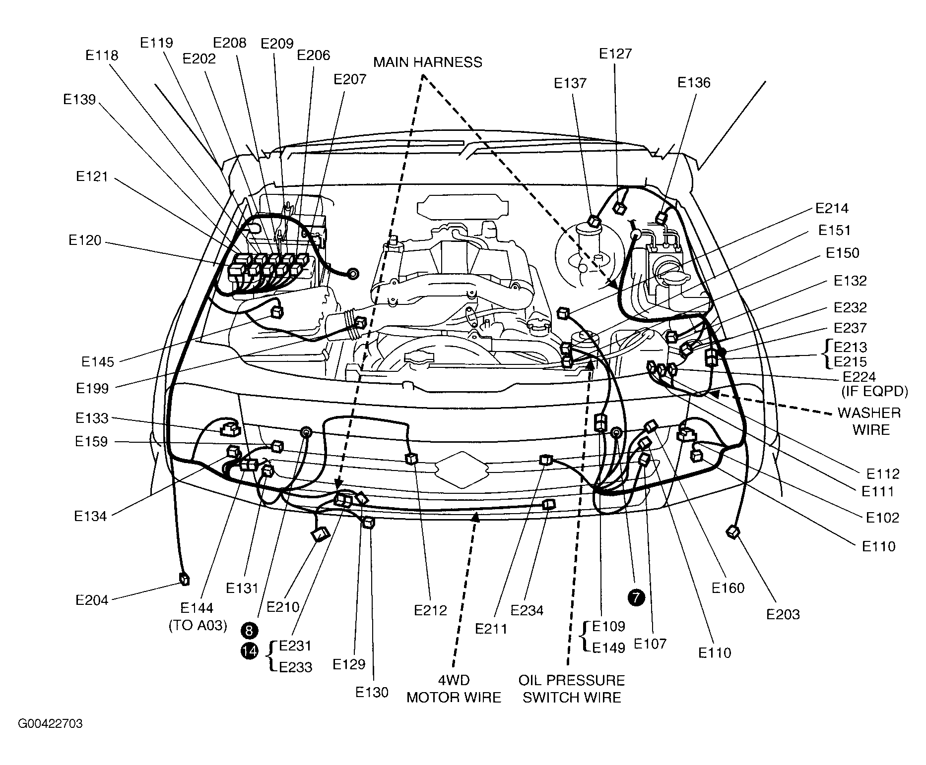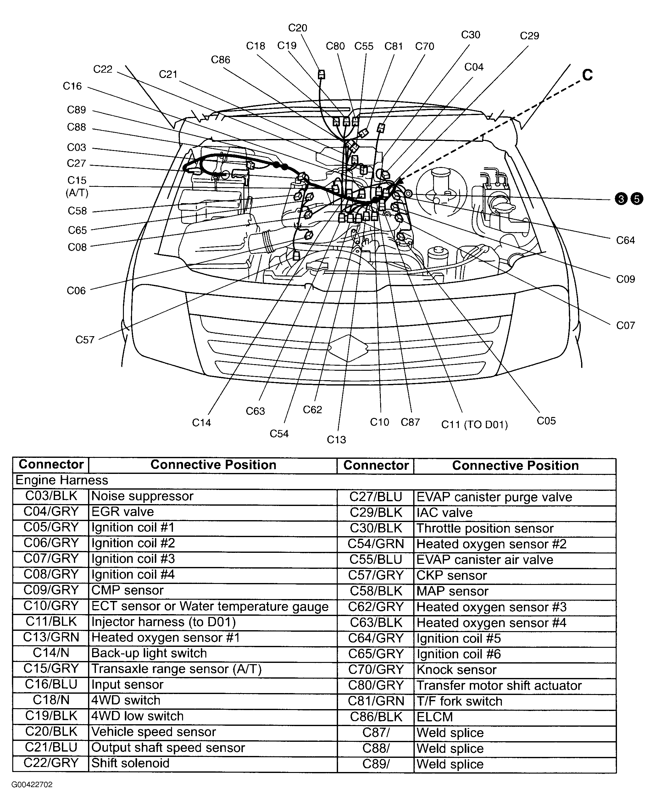 | Actuator Assembly W/Control Module (E132) | Left front of engine compartment. See Figure . |