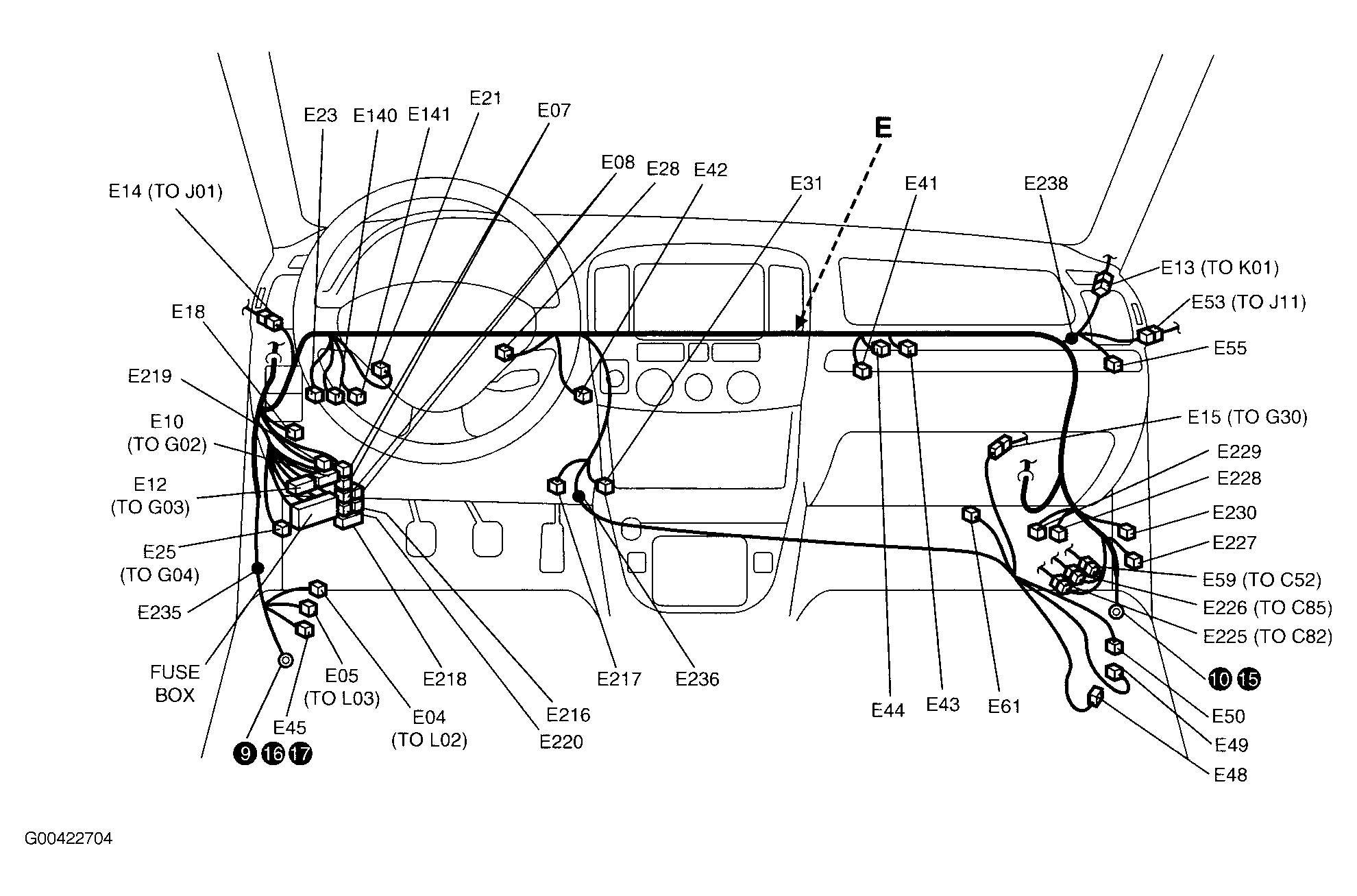 | TCM (E228) | Right side of dash. See Figure . |