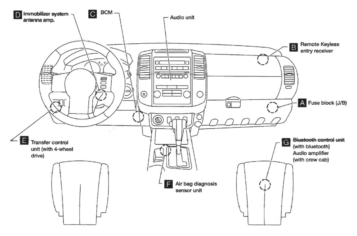 | Transfer Control Unit (With 4WD) (E) | Left side of dash. See Figure. |
