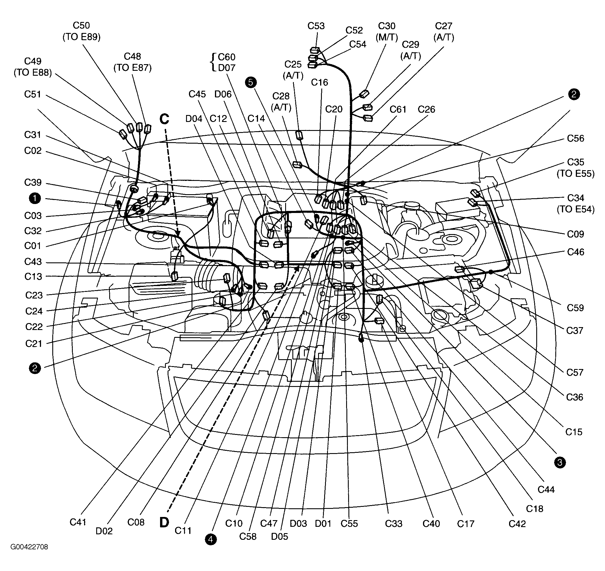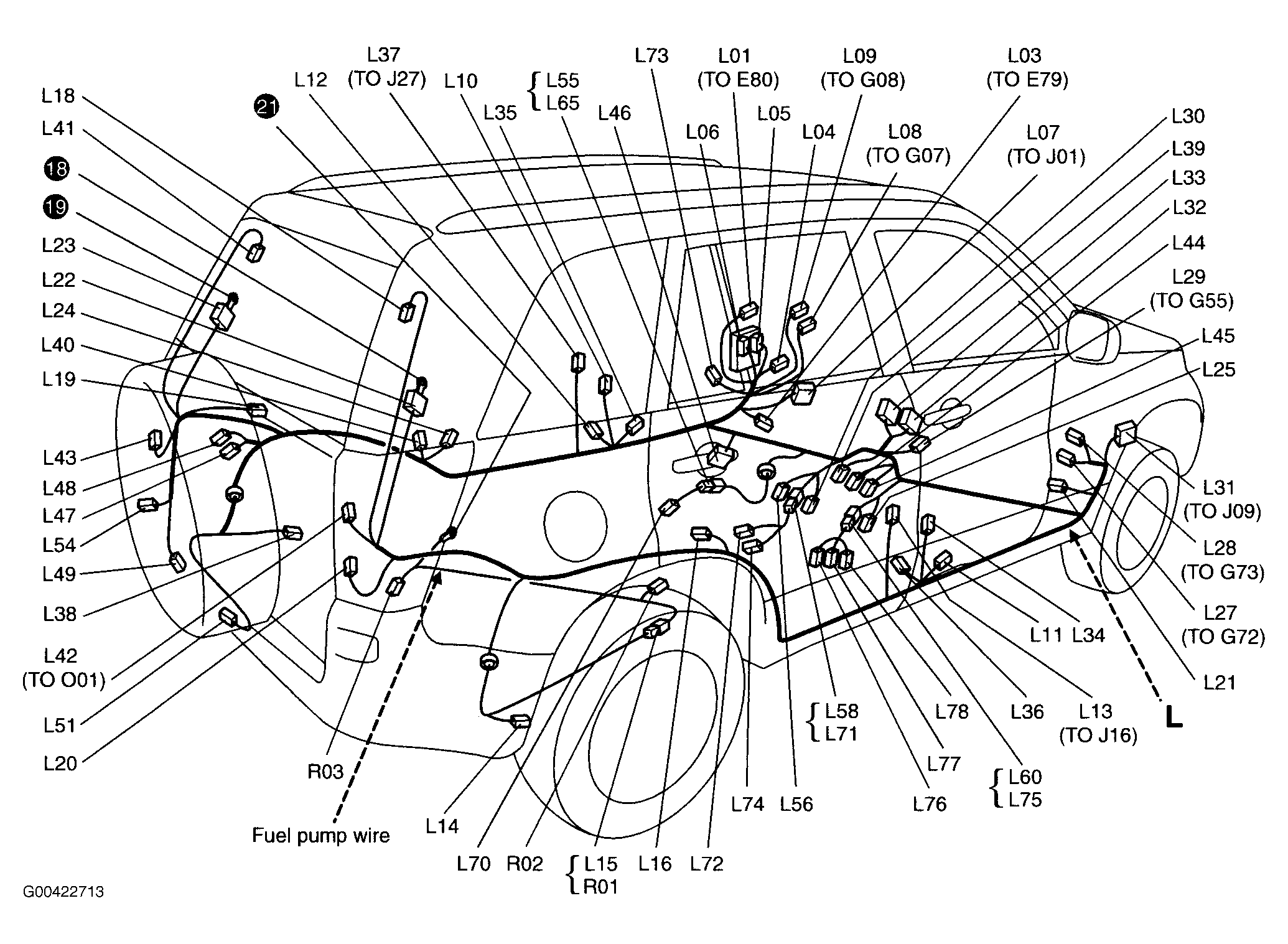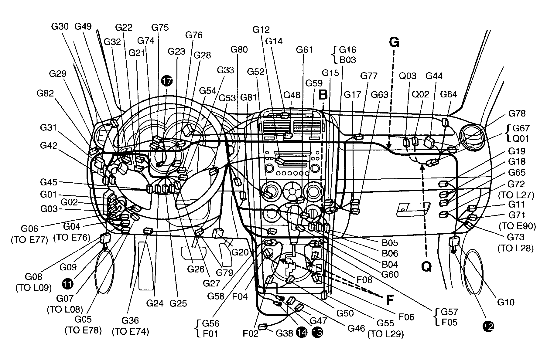 | Diode No. 2 (G19) | Behind right side of dash. See Figure. |