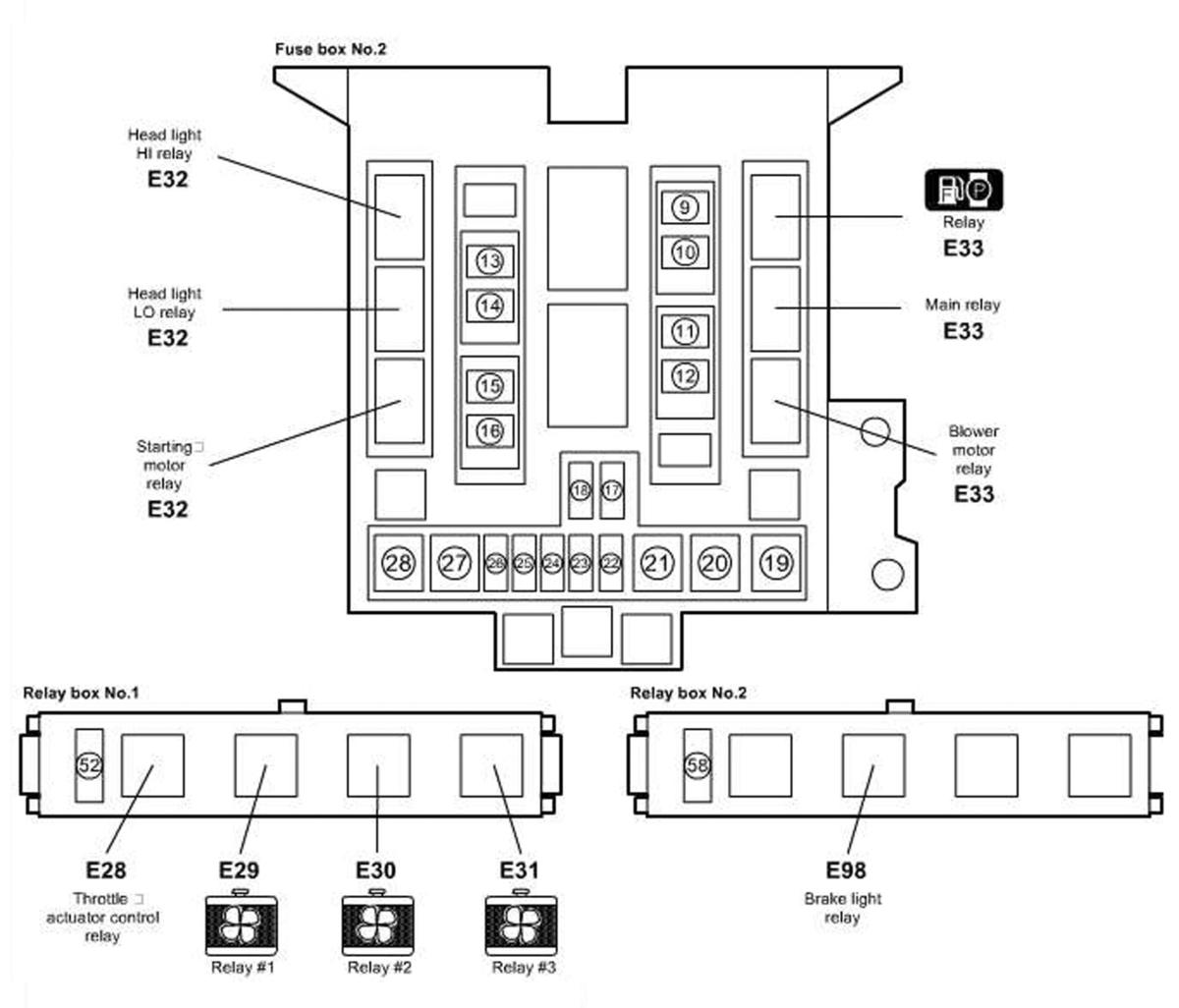 | Fuse Box No. 2 | Left rear of engine compartment. See Figure. |