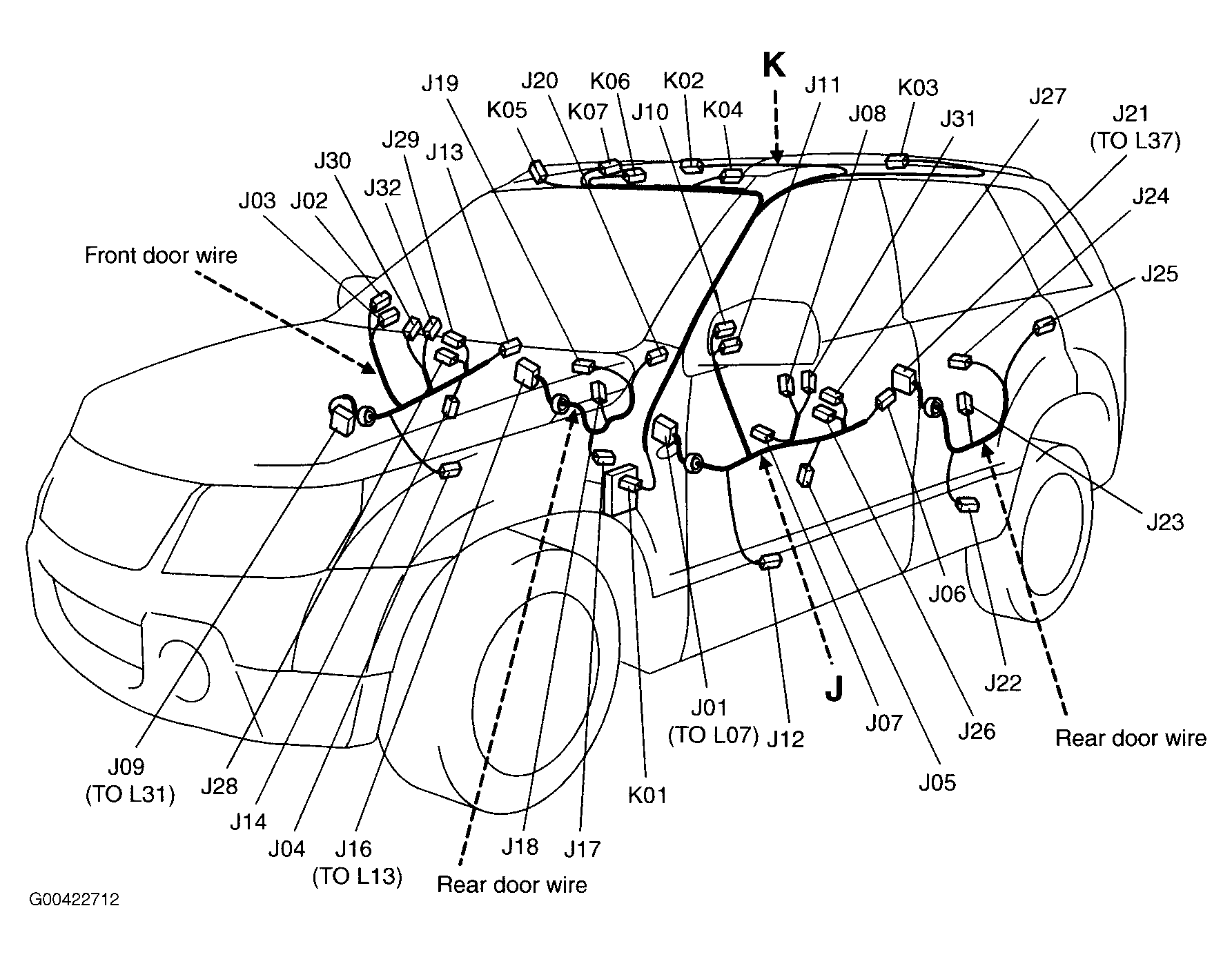 | Sliding Roof Unit (K06) | Center front of roof. See Figure. |