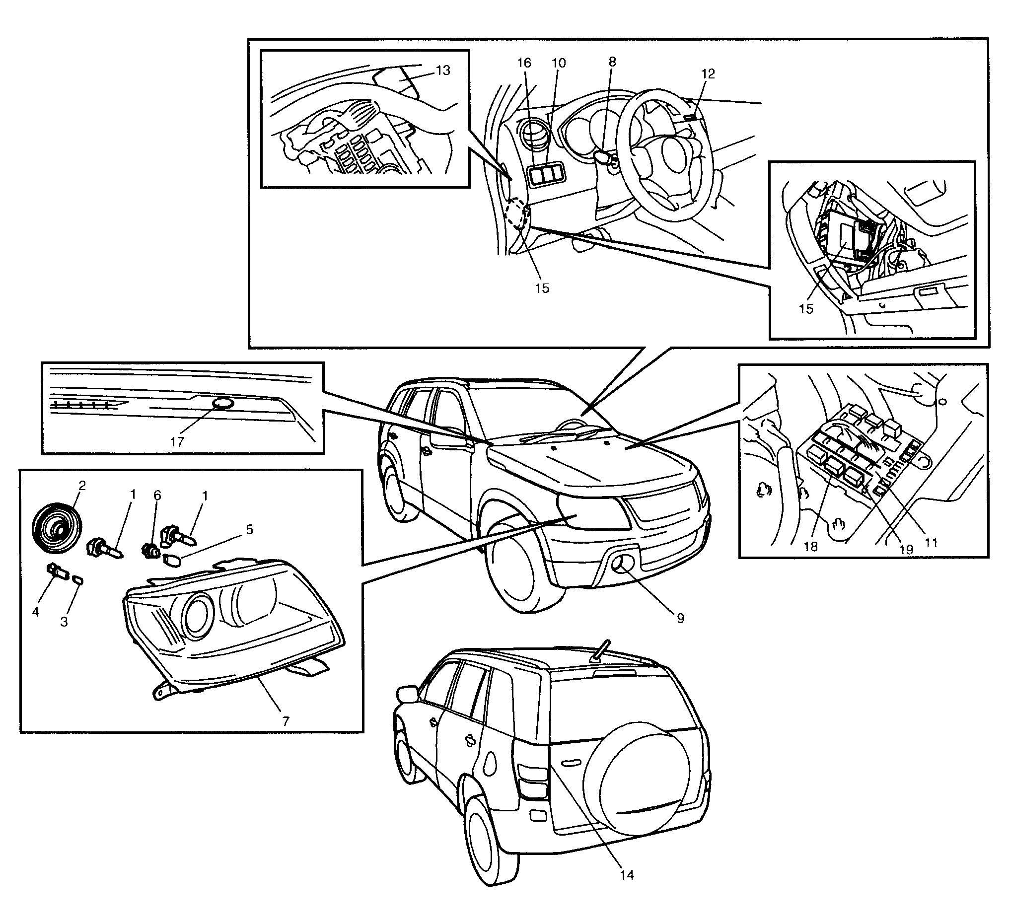 | ELCM (L70) | Under left rear of vehicle. See Figure. |