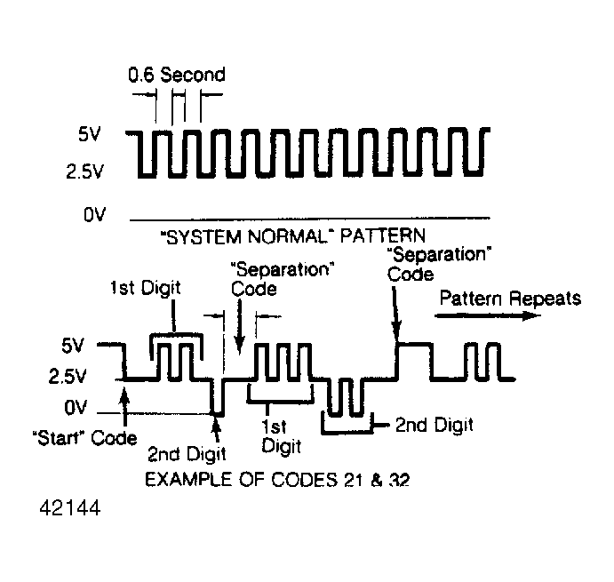 - If no trouble codes are stored in ECU memory, the "start code" will be displayed, followed by the "system normal" code. The "system normal" code consists of a series of needle fluctuations between 5 volts and 2.5 volts at 0.6 second intervals.