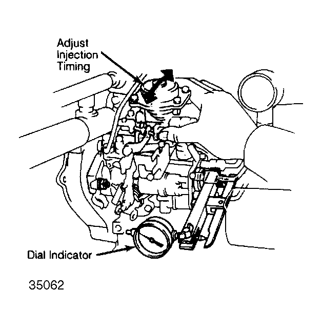 - Injection timing (dial indicator plunger lift) should be .0382-.0406" (.97-1.03 mm) for Calif. models; .0433-.0465" (1.10-1.8 mm) for Federal models.