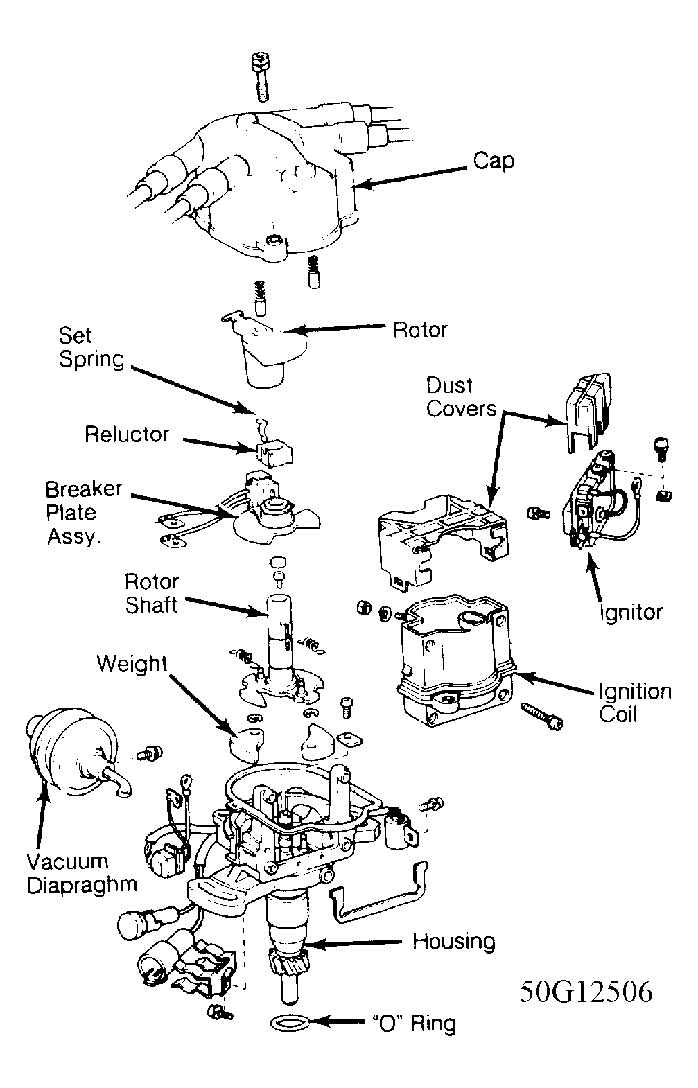 Nippondenso electronic ignition system includes a breakerless distributor, an ignitor, an ignition coil, and pick-up coil. Distributor consists of a housing, rotor, and cap. It contains a reluctor, breaker plate, and pick-up coil assembly. See Fig 1.