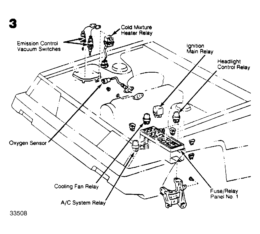 | Heater Circuit Breaker | On fuse/relay panel No. 3. See Figure. |